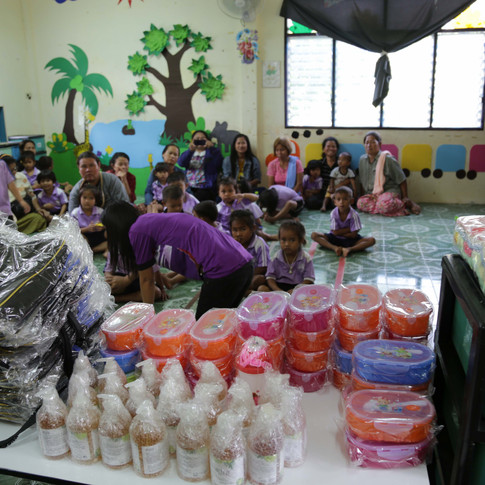 ทางมูลนิธิได้เดินทางไปมอบ ที่นอนเด็กเล็ก กระเป๋านักเรียน ของเล่นและตุ๊กตา สื่อการเรียนการสอน ผ้าเช็ดตัว หนังสือนิทาน ให้กับน้องๆ ที่ศูนย์พัฒนาเด็กเล็กบ้านนาหว้า จ.อุบลราชธานี